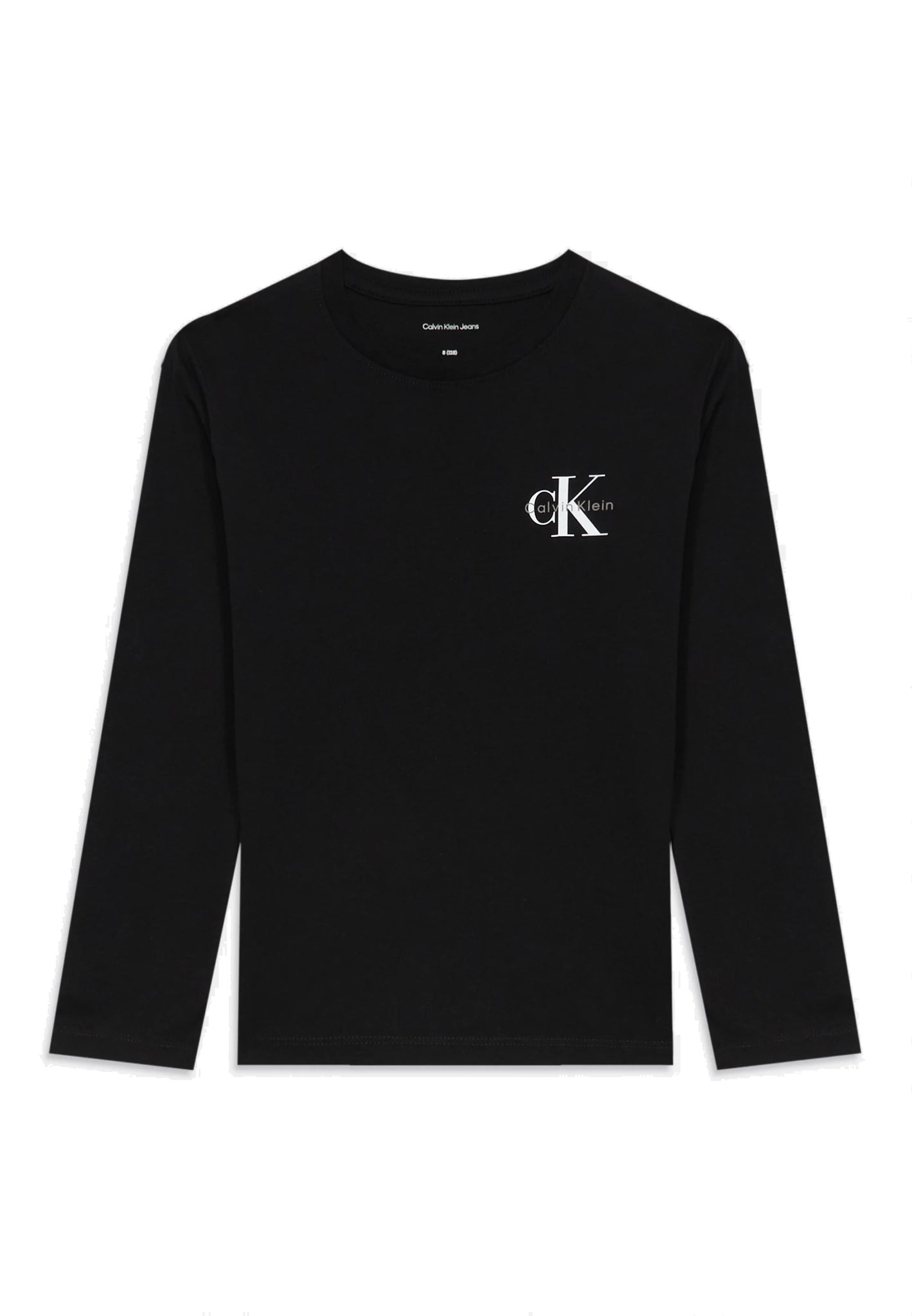 Calvin Klein Jeans T-Shirt Manica Lunga in Cotone Nero con Logo sul Petto
