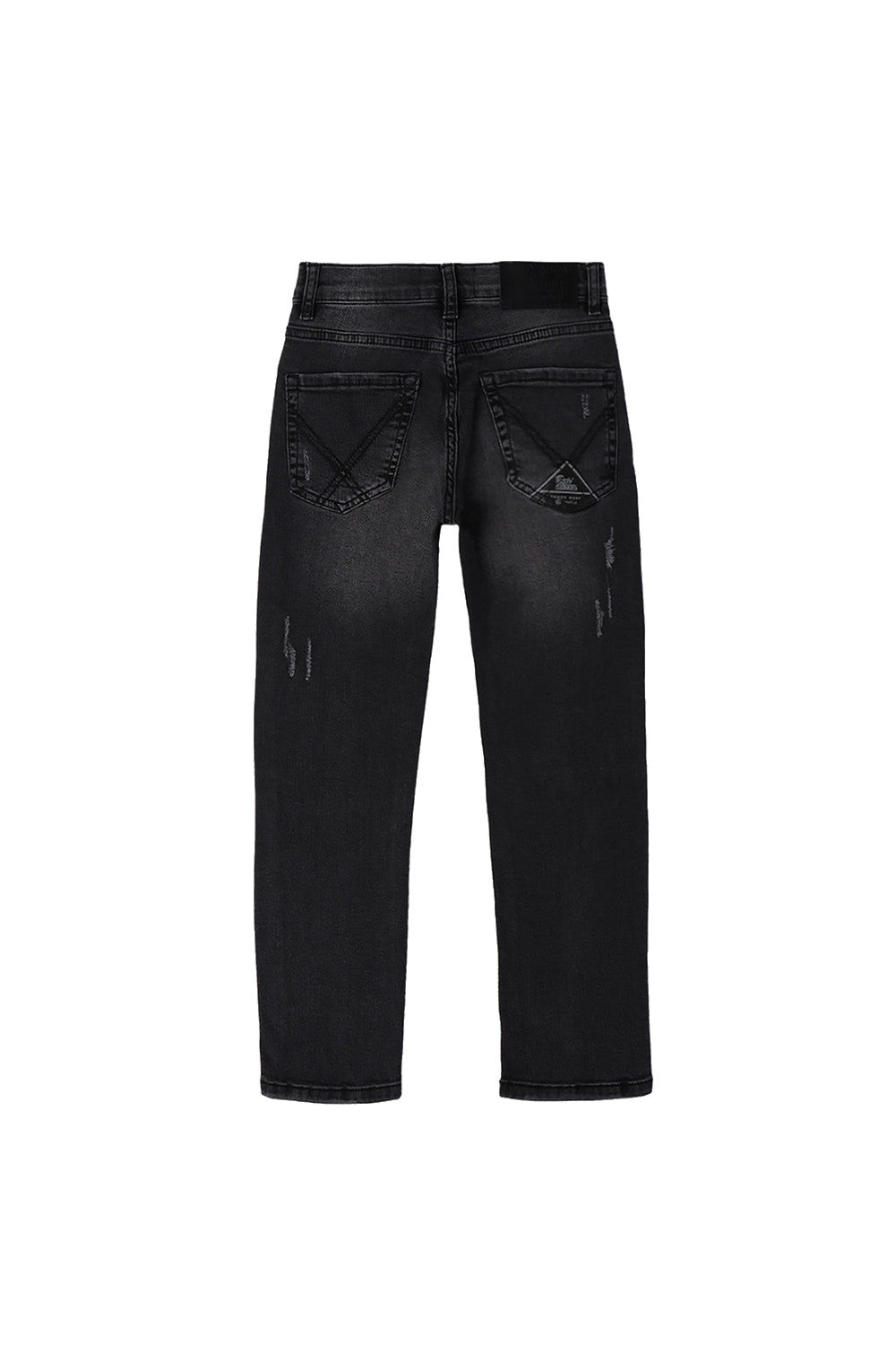- Jeans in denim effetto used con lavaggio scuro.
