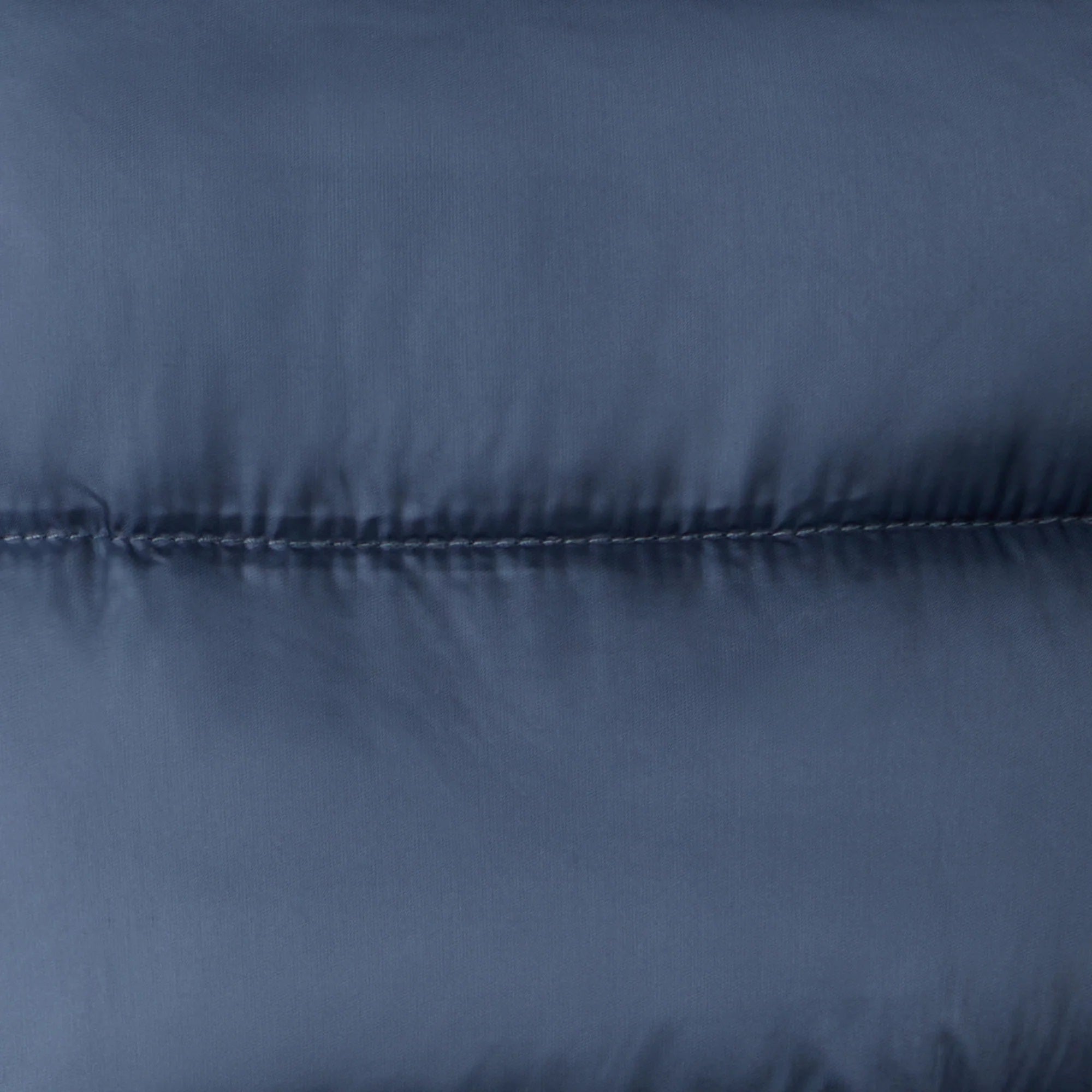 Piumino nero leggero, imbottito e trapuntato, a maniche lunghe, con cappuccio, chiusura frontale con zip, tasche laterali con zip, polsini elasticizzati; è imbottito con Plumtech, un'ovatta termica sintetica, realizzata nel rispetto dell'ambiente e degli animali; è traspirante e trattiene il calore. È decorato con logo gommato sulla manica.