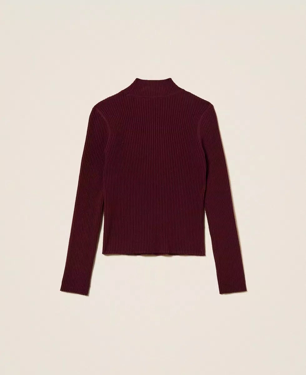 Maglia da bambina in misto viscosa a costine con placchetta logo Oval T davanti, collo a lupetto, maniche lunghe, linea fitted.
